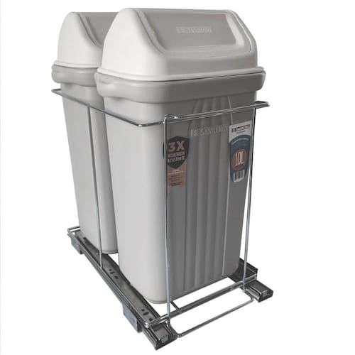 A lixeira dupla deslizante é uma ótima opção para otimizar o espaço de sua cozinha. Conta com dois cestos de lixo, cada um com capacidade de 10 litros excelente para compor a prática separação do lixos. Essa lixeira com tampa basculante é instalada no interior do armário ou nicho, oferecendo praticidade e funcionalidade em seu ambiente.