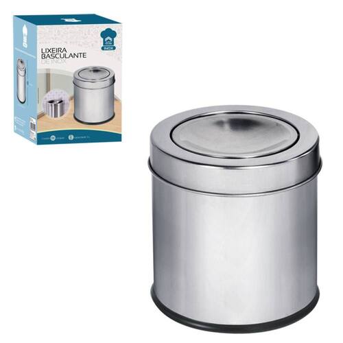 Lixeira com tampa basculante, em material inox. Elegância e praticidade para sua casa ou sua empresa Especificações: Capacidade: 3 litros Cor: Prata Composição: Inox e plástico Material da estrutura: Aço inoxidável Material da cobertura: Aço inoxidável Capacidade: 3 L Forma: Circular Comprimento:18 cm Largura:18 cm Altura:26 cm Peso:600 g Unidades por pacote: 1 Dimensões do produto - cm AxLxP A:24XL:17.5CM