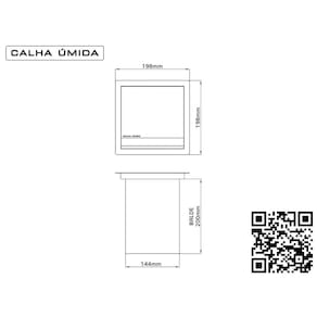 Dimensões: 198 x 198 x 200 mm (CxLxA) Medidas para corte da bancada: 175 x 175mm (Comp x Larg) Acabamento: Scotch Brite (escovado)Material: Aço Inoxidável AISI 304 e 430 Espessura: 1.0 mm