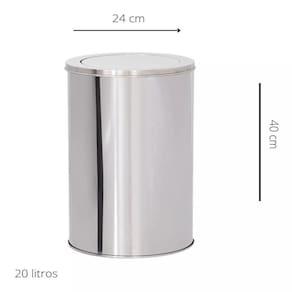 Lixeira Basculante Redonda Inox 24x40 20 Litros Elegância e Praticidade para Todos os EspaçosDescubra a combinação perfeita de estilo e funcionalidade com a Lixeira Basculante Redonda de 20 Litros. Feita em aço inoxidável, ela oferece durabilidade e resistência, além de um toque de sofisticação que se adapta a qualquer ambiente.Características do Produto:Material Premium: Fabricada em aço inoxidável, conhecido pela sua durabilidade e facilidade de limpeza, garantindo que sua lixeira mantenha um aspecto novo por muito mais tempo.Capacidade Ideal: Com 20 litros, é perfeita para áreas de alto tráfego como cozinhas, banheiros e escritórios, oferecendo o espaço necessário para um descarte eficiente de resíduos.Design Moderno: O design redondo com tampa basculante facilita o uso, permitindo que você mantenha o ambiente limpo e higiênico sem esforço.Estética Elegante: O acabamento polido do aro basculante traz um toque refinado, complementando diversos estilos de decoração e elevando o visual do seu espaço.Dimensões Compactas: Com 24 cm de largura e 40 cm de altura, essa lixeira é uma opção versátil que se encaixa perfeitamente em diversos ambientes, mesmo os menores.Se você procura uma lixeira que combine praticidade com uma estética refinada, a Lixeira Basculante Redonda Inox 24x40 20 Litros é a escolha ideal. Funcional e elegante, ela é o complemento perfeito para o seu ambiente, garantindo um espaço sempre organizado e estiloso.