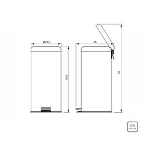 DIFERENCIAIS Material: Aço Inox AISI 430 Espessura: 0,4 mm Acabamento: Scotch Brite Tratamento anti digitais: Não Alça para transporte: Sim Abertura: Pedal Tampa: Sim, com sistema stay open Fechamento suave da tampa: Sim Balde plástico removível: Sim Capacidade: 30 L Saco de lixo recomendado: 50 - 60 L