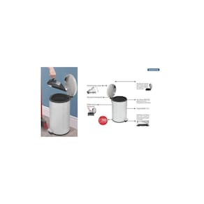 Material: Aço Inox AISI 430 Espessura: 0,4 mm Acabamento: Scotch Brite Tratamento anti digitais: Não Alça para transporte: Sim Abertura: Pedal Tampa: Sim, com sistema stay open Fechamento suave da tampa: Sim Balde plástico removível: Sim Capacidade: 12 L Saco de lixo recomendado: 15 - 20 L