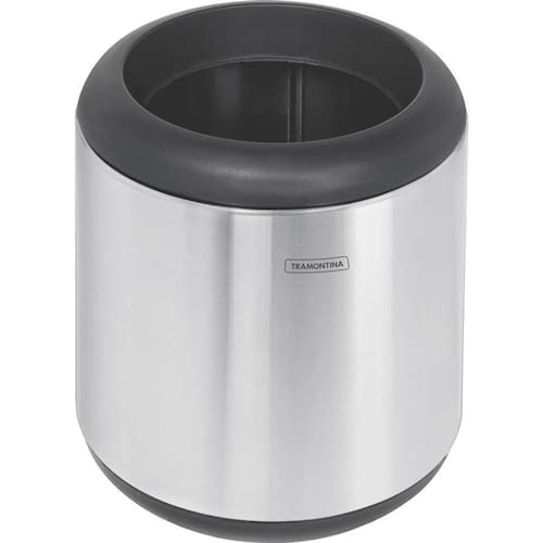 Lixeira Inox Tramontina Cápsula com Acabamento Scotch Brite e Aro e Base em Polipropileno 7 L Tenha um produto versátil e cheio de estilo. A Lixeira Inox Tramontina Cápsula com Acabamento Scotch Brite e Aro e Base em Polipropileno 7 L, possui aramado interno para fixação do saco de lixo e ainda pode ser usada como cachepô. Com visual moderno, é produzida em aço inox com acabamento scotch brite e base e aro em polipropileno. Tem capacidade de 7 L e qualidade de um produto fabricado no Brasil. Informações Gerais Material: Aço Inox AISI 430 Espessura: 0,5 mm Acabamento: Scotch Brite Tratamento anti digitais: Não Alça para transporte: Não Tampa: Não Balde plástico removível: Não Capacidade: 7 L Saco de lixo recomendado: 10 - 15 L Recomendações de Uso Produto para uso interno. Para a limpeza, lavar com uma esponja macia e detergente neutro. Nunca deixar objetos metálicos por muito tempo em contato com a lixeira, para evitar a corrosão. Evitar o contato com ácido muriático, água sanitária ou qualquer outro solvente que possa vir a agredir o produto. Para manter o brilho da sua lixeira, recomenda-se o uso da Luva de microfibra para limpar aço inox Tramontina Ref.: 94537/004 e também da pasta para polir e remover manchas em superfícies de aço inoxidável "Tramontina". Não utilizar para limpeza, palha de aço inox ou outros elementos ou produtos que possam riscar o aço inox.