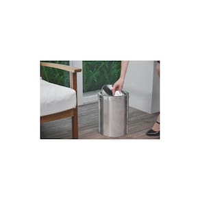 Material: Aço Inox AISI 430 Espessura: 0,4 mm Acabamento: Polido Tratamento anti digitais: Não Alça para transporte: Não Tampa: Sim, basculante Balde plástico removível: Não Capacidade: 12 L Saco de lixo recomendado: 15 - 20 L