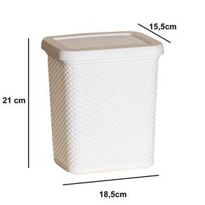 As dimensões dessa lixeira são as seguintes: - Altura: 21 cm - Largura: 15,5 cm - Profundidade: 18,5 cm