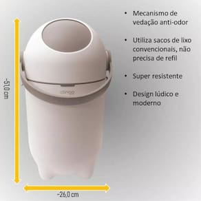 Ela é versátil, leve e permiti o uso de qualquer saco de lixo, sem necessidade de refil especial. Descubra uma nova forma de lidar com o descarte de fraldas, tornando a rotina de cuidados com o bebê mais agradável e higiênica.