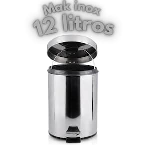 Características: - Material de Aço Inox; - Sem ponto de solda (maior durabilidade); - Alça mais robusta e fácil de manusear; - Balde interno removível de plástico; - Mecanismo de acionamento e pedal super-resistente (durabilidade de mais de 1 milhão de ciclos, ou seja, pode ser acionado mais de 1 milhão de vezes que continuará funcionando perfeitamente); - Maior Espessura (mais resistente); - Cor: Prata/Inox; - Dimensões do item: ø25cmx41cm (12 Litros); - Linha Decorline Lixeiras;