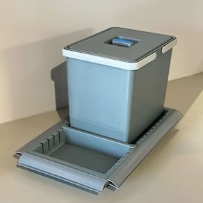 Lixeira Metropolis com Base M 15 Litros – Zen Design A Lixeira Metropolis com Base da Zen Design une resistência e praticidade. Ideal para cozinhas, áreas de serviço e ambientes corporativos, oferece uma solução discreta e eficiente para o descarte de resíduos do dia a dia. Com capacidade de 15 litros, é fabricada com materiais duráveis e de alta qualidade, garantindo resistência e longa vida útil. Seu acabamento cinza combina com diversas decorações. Este modelo acompanha uma base que proporciona estabilidade à lixeira, evitando que ela tombe com facilidade, além de servir para armazenar os sacos de lixo de forma prática e organizada. Especificações técnicas: Marca: Zen Design Profundidade: 520mm Largura: 240mm Altura: 280mm Largura do Módulo: 262mm a 292mm Acabamento: Cinza Código: LP2040 Garantia: 12 meses