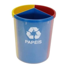 Lixeira Mix Com 3 Divisões Para Coleta Seletiva Lixeira MIX com 3 divisões. Cesto injetado em plástico transparente, com divisões internas coloridas conforme o resíduo a ser separado. Acompanha os adesivos correspondentes não colados ao cesto . Disponível nas cores:- Vermelho = Plásticos - Azul = Papéis- Amarelo = Metais ou Vermelho = Plásticos - Azul = Papéis- Marrom - Orgânico Demais cores mediante encomenda prévia Medidas: 395 mm altura x 315 mm diâmetro .