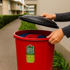 Fabricada em plástico resistente e reciclável, combina leveza, durabilidade e facilidade de limpeza. A tampa articulada protege contra mau cheiro e evita contato direto com os resíduos, proporcionando mais conforto e segurança.