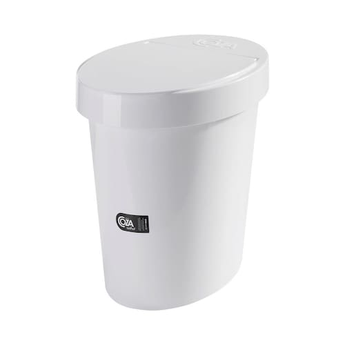 A Lixeira Oval Coza Retro Branco - 5L foi desenvolvida em poliestireno polido, material resistente e de fácil limpeza, e está disponível na cor vermelha.