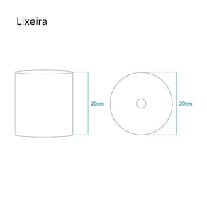 A lixeira possui tamanho de 20x20cm, tendo uma capacidade de 6,2 litros. Tamanho ideal para uso em banheiros.