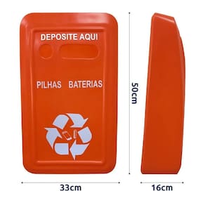 Outras Informações: - Fixação na parede não acompanha bucha e parafuso ; - Acompanha adesivos de identificação; - Cor Laranja conforme resolução do CONAMA identificação de lixeiras para descarte de resíduos perigosos como pilhas e baterias . Marca: Não Informado