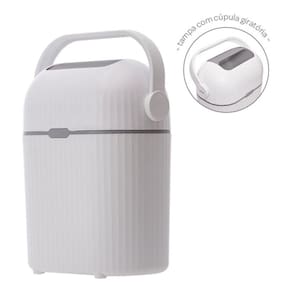 Tampa com cúpula giratória ideal para fraldas. Comporta sacolas plásticas e sacos de lixo convencionais. Trava de segurança para impedir o acesso indevido. Sistema antiodor e anel de vedação para manter o ambiente sempre fresco. Capacidade de 9 litros, perfeita para o uso diário. dimensões: 24 x 36 x 12 cm; 1,7 kg