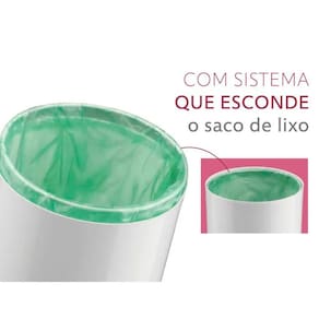 Lixeira Para Pia 5 Litros Branco Cromado Colore Future 550CRNa Lixeira com Tampa nenhuma parte do saquinho de lixo fica aprente, graças ao aramado interno que prende e esconde o saquinho ou a sacola de mercado. E é muito fácil de trocá-los para fazer o descarte do lixo. Fabricada em plástico, é indicada para uso em banheiros ou cozinhas. Com sistema que prende e esconde o saco plástico.CaracterísticasMaterial Plástico e Aço Carbono Pintado aramado interno | Cor Branco CromadoMedidasProfundidade 20 cm | Largura 20 cm | Altura 23 cm | Peso 0.404 kgOrientaçãoPara limpeza periódica recomenda-se o uso de um pano macio, água e sabão neutro. Nunca utilize materiais abrasivos, lã de aço, esponjas ásperas, solventes ou produtos químicos corrosivos (cloro, água sanitária).