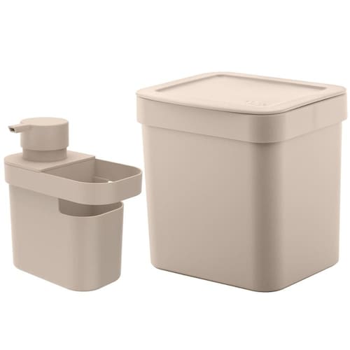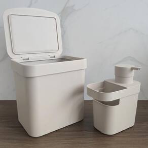 O conjunto de uma lixeira para cozinha 4,7 litros e um porta detergente organizador 650ml da linha Trium é perfeito para quem procura funcionalidade e beleza sobre a pia, pois permite a organização de forma versátil além de otimizar o espaço do ambiente. Com design minimalista, o kit de organizadores de pia combina com todos os tipos de cozinhas ou varandas gourmet.
