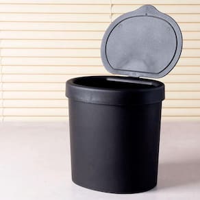 A lixeira é produzida em plástico (PP) na cor preta, é extremamente durável e fácil de limpar ou lavar, tornando-a muito mais higiênica.