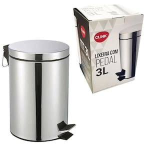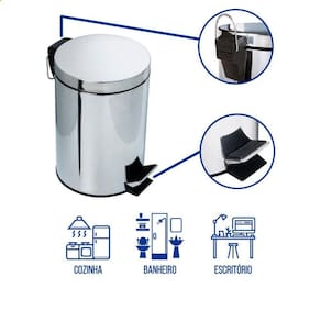 - 01 Lixeira Inox 3L com pedal redonda e balde removível