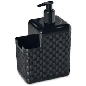 Dispenser porta detergente e bucha rattan preto lindo dispenser porta detergente e bucha rattan, ele vem com suporte para esponja. Além disso, foi muito bem pensado pois vem com furinhos embaixo para a água escorrer e não acumular dentro do recipiente. Sua proposta é deixar a pia mais organizada e bonita, além de ser uma forma econômica e higiênica de utilizar o detergente, possibilitando que economize comprando embalagens industriais.