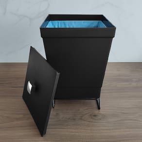 Lixeira Plástica Com Suporte 6,5L Cesto De Lixo Para Banheiro Preto Fosco Stolf. #Com aro interno para colocação da sacola #Lixeira para banheiro lavabo #Linha Black Stolf Garantia: 90 Dias / Peso: 730g / Cores: Preto fosco e cromado / Ref: 1447BLPSTD Dimensões: 20cm (C) x 20cm (L) x 30cm (A) Dimensões internas: 19cm (C) x 19cm (L) x 24cm (A) Capacidade: 6,5 Litros. Limpeza e cuidados: - Lavar com água e sabão neutro, utilizando esponja macia, seguido de pano seco; - Não utilizar produtos químicos ou abrasivos na limpeza; - Evitar batidas e contato com objetos cortantes. Detalhes do produto: - Possui suporte de apoio para que a lixeira não fique diretamente sobre o chão; - Possui aro interno de metal para ajustar o saco de lixo e torná-lo oculto; - A tampa possui abertura manual. Materiais: - Aço Cromado; - Polipropileno. Esta lixeira para banheiro da linha Black é funcional a ponto de manter a limpeza, organização e décor em perfeita harmonia. Em formato quadrado, o cesto de lixo traz a neutralidade elegante do preto fosco em um item funcional e que se adapta a diferentes estilos de ambiente. Com capacidade de 6,5 litros, a lixeira preta acompanha um suporte para ser apoiado no chão e um anel de metal interno para ajustar o saco de lixo e torná-lo oculto.