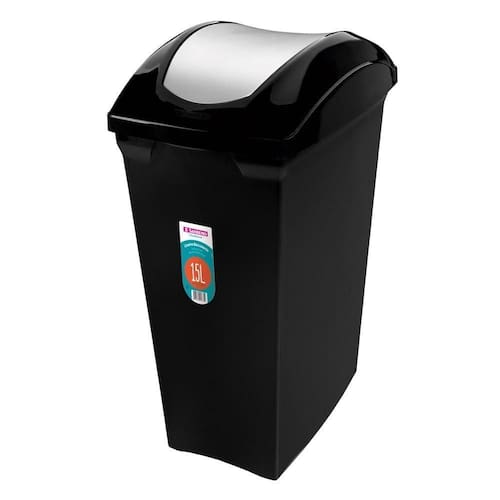 A Lixeira Plástica com Tampa Basculante Preta/Prata 15L Casablanca Sanremo conta com design elegante que otimiza espaço e inteligente: possui pegas inferiores e superiores para encaixe das mãos, permitindo sempre o melhor esvaziamento. E mais: angulação da tampa basculante, que garante bom VOLUME DA CAIXA interno e faz bonito em qualquer ambiente.