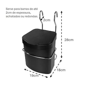 Suporte Cromado Com Lixeira Preta 2,5L Para Barra Parede Cozinha