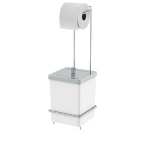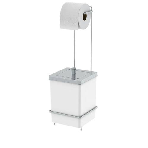 Lixeira Quadrada 6,5L E Suporte Papel Higiênico De Chão - Branca 1632Bcc