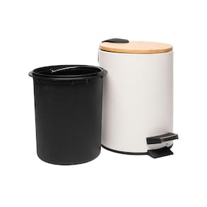 Lixeira Redonda de Metal com Pedal e Tampa de Bambu Branca 3L Apresentamos a lixeira redonda de metal, equipada com pedal e tampa em bambu na cor preta, uma escolha prática e moderna para seu espaço. Com capacidade de 3 litros, esta lixeira combina funcionalidade com um design moderno e sofisticado. O metal resistente garante durabilidade, enquanto o acabamento em bambu adiciona um toque de naturalidade e estilo à peça.
