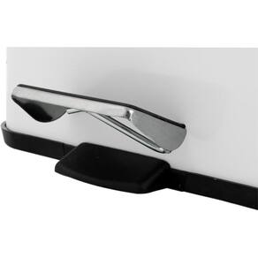 Fabricada em aço inox 410. Possui bandeja plástica e abertura da tampa por pedal com sistema de amortecimento.