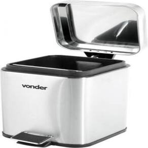 Fabricada em aço inox 410. Possui bandeja plástica, alça de aço carbono revestido de zinco e abertura da tampa por pedal com sistema de amortecimento.