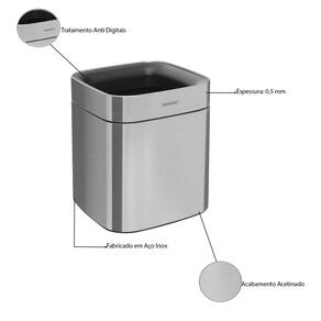 Lixeira Square Aço Inox Acetinado Sem Tampa 8 Litros - Tramontina 94540/108 A Lixeira Sem Tampa Tramontina Square em Aço Inox com Acabamento Acetinado 8L é um produto sofisticado que impressiona pelo design elegante e moderno. Sua praticidade está no fato de não possuir tampa, facilitando o uso no dia a dia. Produzida em aço inox de alta qualidade, com acabamento acetinado que reduz marcas de dedos, garante resistência e fácil higienização. Com capacidade de 8 litros e balde interno removível, é ideal para qualquer ambiente, unindo estilo, durabilidade e funcionalidade. Garanta já a sua e leve mais praticidade e sofisticação para o seu ambiente Características do Produto: Material: Aço Inox AISI 430 Espessura: 0,5 mm Acabamento: Acetinado Tratamento anti digitais: Sim Alça para transporte: Sim Tampa: Não Balde plástico removível: Sim Capacidade: 8 L Saco de lixo Tramontina: 12 L, letra E Saco de lixo recomendado: 10 - 15 L Dimensões do Produto AxLxC : 27,8x24,4x24,4 cm Peso: 1,55 kg Imagens meramente ilustrativas, não acompanham decorações. de Fábrica: 90 dias de legal, acrescidos de 03 meses de contratual para a tampa com sensor para vícios ou defeitos de fabricação. Recomendações de uso: Produto para uso interno. Para a limpeza, lavar com uma esponja macia e detergente neutro. Nunca deixar objetos metálicos por muito tempo em contato com a lixeira, para evitar a corrosão. Evitar o contato com ácido muriático, água sanitária ou qualquer outro solvente que possa vir a agredir o produto. Para manter o acabamento da sua lixeira, recomenda-se o uso da pasta para polir e remover manchas em superfícies de aço inoxidável Tramontina 94537/000 e Spray de limpeza para aço inox - Superinox 94537/003 . Não utilizar para limpeza, palha de aço inox ou outros elementos ou produtos que possam riscar o aço inox. Não nós responsabilizamos, no ato da entrega, por subir escadas/elevadores ou pelo transporte de guincho em apartamentos. Eventuais despesas são de responsabilidade do comprador. Marca: Não Informado