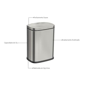 O acabamento acetinado confere elegância e durabilidade ao produto, além do acabamento anti digitais, que mantém a lixeira sempre com aspecto limpo.