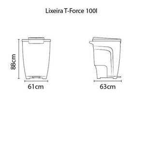 Lixeira Tramontina T-force Preto 100 L A Lixeira T-Force Tramontina Basic Preta 100 L da Linha Basic atende às exigências das atividades diárias. Com capacidade de 100 litros, ela leva funcionalidade e estilo para os ambientes. Na sofisticada cor preta, é perfeita para harmonizar os espaços da casa ou corporativos. É produzida em polipropileno e é articulável, além de possui tampa acionada com pedal. A haste de acionamento é resistente e garante a mesma abertura da tampa por um longo tempo. Recomendações de Uso: - Antes de utilizar o , remova as eventuais etiquetas e lave-o com água quente e detergente. - A limpeza deste produto deve ser feita com água e sabão neutro, auxiliada por esponja macia ou tecido macio apropriado. - O uso de produto químicos, esponjas abrasivas e outros equipamentos como lava-jatos não são recomendados. - Evite exceder o limite de peso e volume estipulado para não comprometer a integridade da peça. - O ou movimentação desse produto deve ser feito com cuidado. Informações Adicionais: