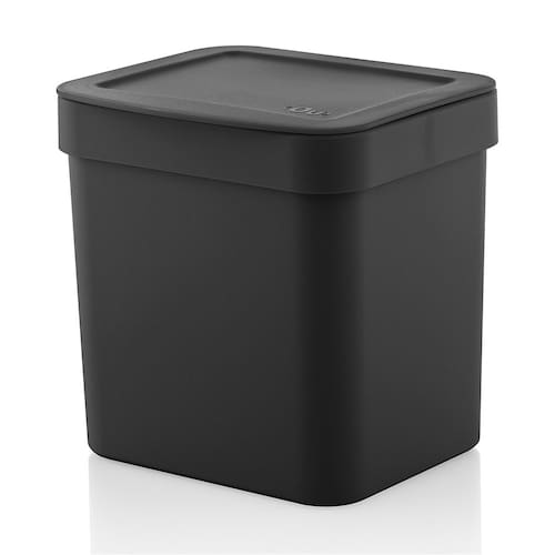 A lixeira Trium da Ou é fabricada em plástico de alta qualidade. Na cor preto, possui capacidade de 2,5 litros e um sistema lateral para ocultar as alças das sacola plástica. Uma proposta de design moderno com tampa plana que facilita o empilhamento. Conta com uma montagem e desmontagem super fácil que auxilia sua higienização.