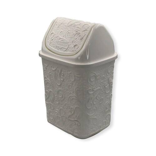 Lixeira de Plástico Renda Floral Branca 4,5 Litros