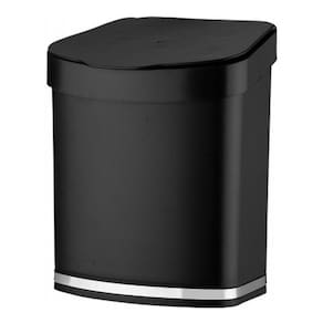 Fabricada em resina plástica de alta qualidade e com tamanho compacto, a lixeira é ideal para ser deixada sobre a pia ou a bancada. Sua tampa removível permite deixar o saquinho de lixo fixo e não aparente.Conta com acabamento em aço carbono cromado (aço em formato achatado) que traz destaque ao objeto usual do cotidiano.Medidas:Profundidade: 13cm / Largura: 18cm / Altura: 21cm / Peso: 0.421 kgEspecificações:Matéria-prima: Resina Plástica + Aço CarbonoCor/Acabamento: Preto / CromadoCapacidade: 2,5 litrosDicas de uso:- Para limpeza periódica recomenda-se o uso de um pano macio, água e sabão neutro.- Nunca utilize materiais abrasivos, lã de aço, esponjas ásperas, solventes ou produtos químicos corrosivos (cloro, água sanitária).INFORMAÇÕES IMPORTANTES:- A(s) cor (es) dos produtos podem sofrer variação de tonalidade, de acordo com a configuração do seu dispositivo ou monitor.