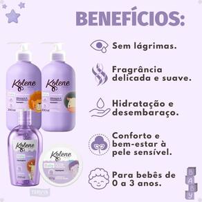 Kit Kolene Baby: Cuidado Completo e Suave para Seu Bebê Descubra o Kit Kolene Baby, a solução ideal para o cuidado diário e delicado da pele e dos cabelos do seu bebê. Especialmente formulado para a faixa etária de 0 a 3 anos, este kit oferece uma experiência de carinho e proteção, garantindo momentos de bem-estar desde o banho até a hidratação e perfumação. Com fórmulas suaves, testadas dermatologicamente, hipoalergênicas e aprovadas por pediatras, o Kit Kolene Baby é a escolha perfeita para nutrir e proteger a pele delicada e os cabelos macios do seu pequeno com a tranquilidade que você merece.