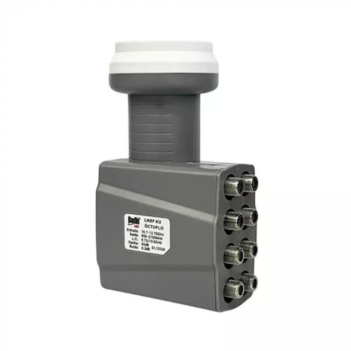 Lnbf Bedinsat Banda Ku Octuplo Projetado para ser utilizado em antenas offset, possui excelente lóbulo de iluminação, o que aumenta ainda mais a qualidade de imagem recebida. O Lnbf Banda Ku Bedinsat oferece alta qualidade de acabamento externo acompanhando todas as normas técnicas internacionais, funciona em modelos de receptores que fazem uso desta Banda Ku. LNBF Ku Bedinsat Octuplo é a melhor solução para sistemas que utilizam até 8 pontos de TV em Banda Ku em uma só antena. Principais características: Rosca do conector com acabamento de alta qualidade; Encaixe perfeito dos plásticos protegendo 100% a parte eletrônica.