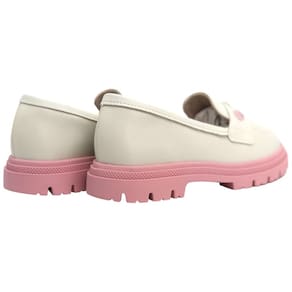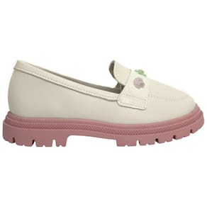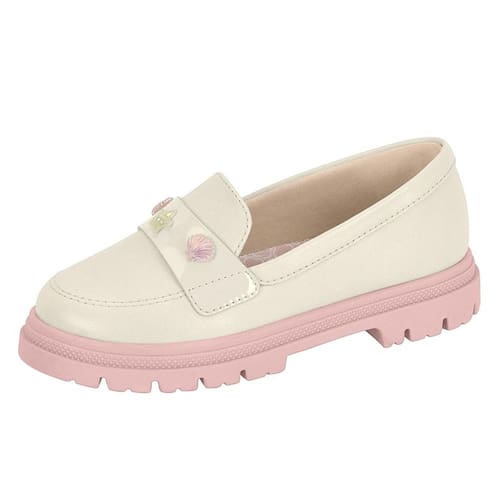 O design do Loafer apresenta um perfil clássico, com um bico arredondado e um recorte elegante no peito do pé. Ele é especialmente projetado para se ajustar ao pé das meninas com conforto e estilo. A característica mais marcante deste Loafer é sua sola tratorada. Esta sola robusta e aderente não apenas proporciona uma ótima tração, tornando-o adequado para várias atividades, mas também adiciona um toque moderno e arrojado ao design tradicional do Loafer.