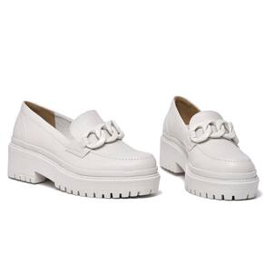 O Sapato Loafer Via Marte, vem com solado robusto e modelagem clássica com enfeite em forma de corrente sobre o pé, indispensável para compor aquele look moderno e sofisticado. Sintetico, parte superior em napa. Na cor off white. Forro tecido poliester. Solado sint.pvc expandido. Salto pvc expandido. Altura 5,50 cm.