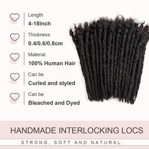 Detalhes do produto: Produto: Locs interligados feitos à mão Material: 100% cabelo humano comprimento longo Afro Bulk Comprimento do cabelo: 15 cm e 20 cm, mais comprimento chega em breve Cor do cabelo: 1B preto natural, pode ser tingido e descolorido Textura: Afro Kinky Curly Pacote: Locs interligados, ganchos e pente de crochê , anéis decorativos. Vantagem de pontos interligados 1. Compare com os locais tradicionais feitos à mão, os pontos interligados são mais leves, mais macios. 2. Os pontos interligados são mais agradáveis à pele e não causam coceira no couro cabeludo e pescoço. 3. Sempre use um volume afro de 5 cm mais longo para intertravar, eles não quebrarão e soltam. Revele a beleza autêntico da África em você - Pontos interligados totalmente feitos à mão, macio, leve e aparência natural. Feito de cabelo 100% humano afro volumosos (você pode fazer o teste de queima). - Os locs podem branquear até a cor clara nº 613 no máximo, você também pode tingi-lo para cor escura após o branqueamento. Além disso, pode ser estilizado como pontas coloridas. - Os pontos de 15 cm são feitos de cabelo afro de 15 a 20 cm; os pontos de 20 cm são feitos de cabelo afro de 20 a 25 cm; os pontos de 25 cm são feitos de cabelo afro de 25 a 30 cm. O entrelaçado não vai cair. - Fechaduras apertadas e seguras: o intertravamento cria dreadlocks apertados e uniformes que são menos propensos a se desfazer, o que o torna uma ótima opção para manter o estilo de longo prazo, mesmo com lavagem regular ou estilos de vida ativos. - Baixa manutenção: Uma vez interligados, os dreadlocks normalmente exigem manutenção menos frequente em comparação com métodos de torção, e é possível aprender a reapertar suas fechaduras em casa usando ferramentas de interligação, economizando tempo e dinheiro. - Aparência elegante: o entrelaçamento dá uma aparência polida e bem cuidada, que atrai pessoas que desejam um estilo ou elegante de dreadlock, tornando-o ideal para aqueles que querem manter dreadlocks enquanto aderem ao local de trabalho ou códigos de vestimenta formais.