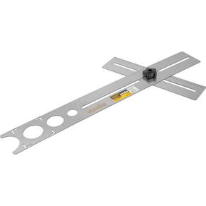 Outro ponto de destaque é a versatilidade dos três tamanhos de furo integrados: 25 mm, 40 mm e 45 mm. Com isso, o localizador se adapta facilmente às principais demandas de instalação seja para torneiras, registros, válvulas, caixas de luz ou outros elementos que exijam perfuração precisa em materiais cerâmicos. Suas dimensões de 65 mm x 300 mm e o peso de 750 g tornam o manuseio simples e estável.