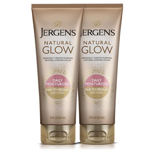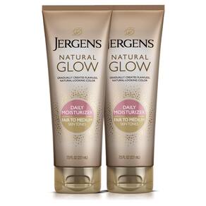 Loção bronzeadora sem sol Jergens Natural Glow, autobronzeador, tom de pele claro a médio, hidratante diário, 7,5 onças (pacote com 2)