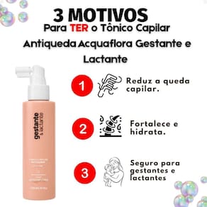 Loção Capilar Antiqueda Acquaflora Gestante e Lactante 130ml Descubra o Loção Capilar Antiqueda Acquaflora Gestante e Lactante 130ml, a solução ideal para mulheres que vivenciam a queda de cabelo durante a gestação e o período de amamentação. Desenvolvido com uma fórmula exclusiva e segura, este tônico oferece um tratamento eficaz para fortalecer os fios e estimular o crescimento saudável, proporcionando tranquilidade e beleza para as futuras e novas mamães.