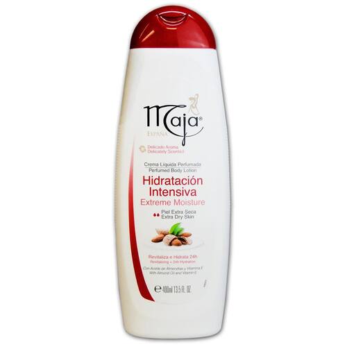 - A Loção Corporal Hidratacion Intensiva Maja é ideal para peles extra secas devido à sua fórmula enriquecida com amêndoas que hidrata profundamente a pele, para uma aparência mais saudável.