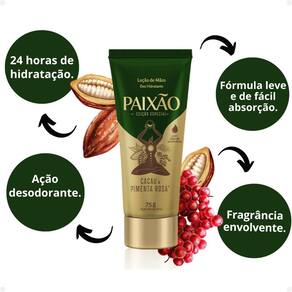 A Loção de Mãos Paixão Edição Especial Cacau e Pimenta Rosa é a escolha perfeita para quem deseja unir o cuidado intenso da pele com uma fragrância marcante e envolvente. Desenvolvida especialmente para as mulheres que buscam mais do que um simples produto de cuidado, esta loção vai além da hidratação: ela proporciona uma sensação de bem-estar que desperta a energia interior e transforma o simples ato de cuidar das mãos em um ritual de prazer. Com uma fórmula exclusiva que combina óleo de amêndoas e 24 horas de hidratação, as mãos ficam macias, com toque aveludado e um perfume que dura o dia todo.