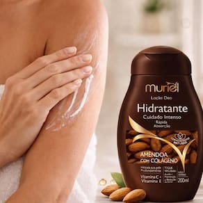 Aplique a Loção Deo Hidratante Muriel Amêndoa Com Colágeno sobre a pele limpa e seca, espalhando com movimentos suaves até completa absorção. Para melhores resultados, utilize após o banho e reaplique nas áreas mais ressecadas. Pode ser combinada com sabonetes ou óleos da linha Muriel para potencializar os efeitos de hidratação e cuidado. Massageie suavemente a pele durante a aplicação para estimular a circulação e potencializar a absorção dos nutrientes.