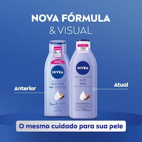 NIVEA Loção Deo-Hidratante Soft Milk é um hidratante corporal que garante um cuidado completo, com 72h* de hidratação para uma pele mais saudável a cada uso.