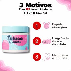 A Loção Hidratante Corporal Ruby Rose Luluca By Melu Sparkle Wave Bubble Girl é perfeita para usar diariamente após o banho, para selar a hidratação e deixar a pele com um toque aveludado e um perfume sutil que dura o dia todo. Ideal para momentos de cuidado pessoal, para relaxar e se sentir bem consigo mesma, ou para presentear alguém especial com um toque de carinho e diversão.