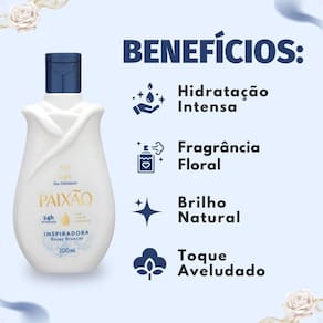 Sinta a delicadeza das rosas brancas acariciando sua pele, enquanto a loção proporciona hidratação profunda e um perfume duradouro. A Loção Hidratante Paixão Rosas Brancas é um convite ao autocuidado e à celebração da sua beleza única.